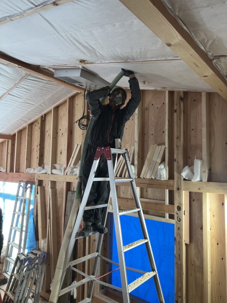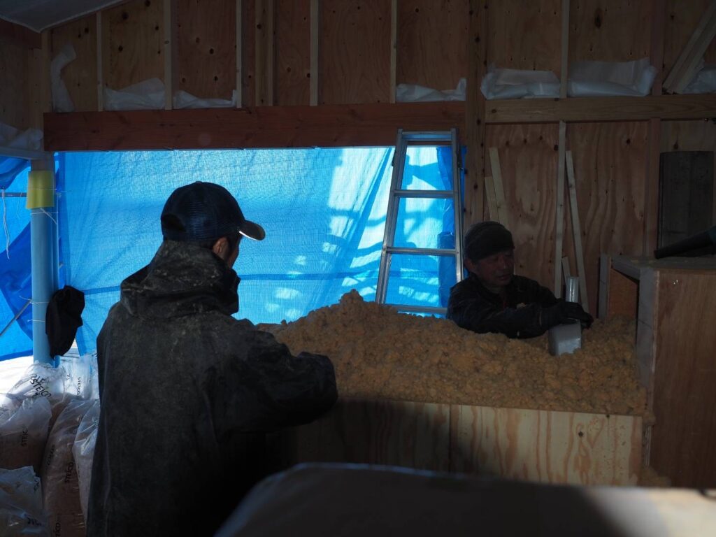 弊社が推奨しております断熱材『木繊維シュタイコ』作業が始まりました。