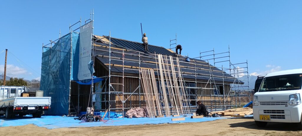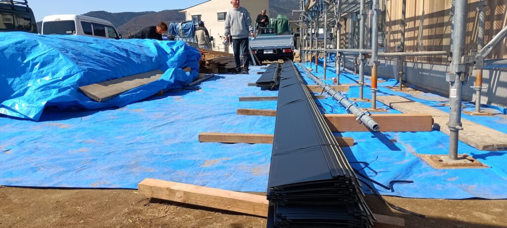 屋根板金の荷上げの日まさかの雪が…すぐ止んで快晴に。